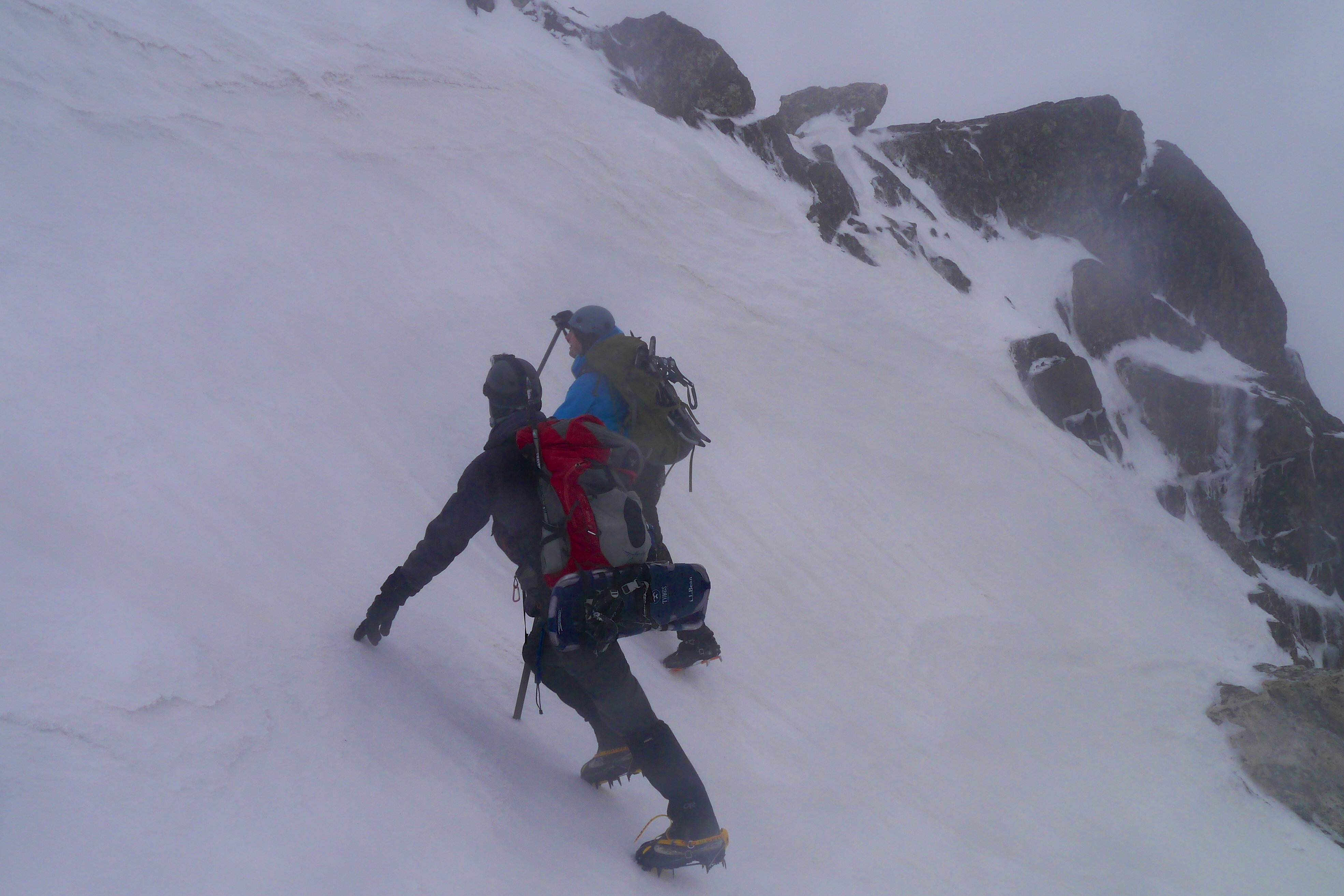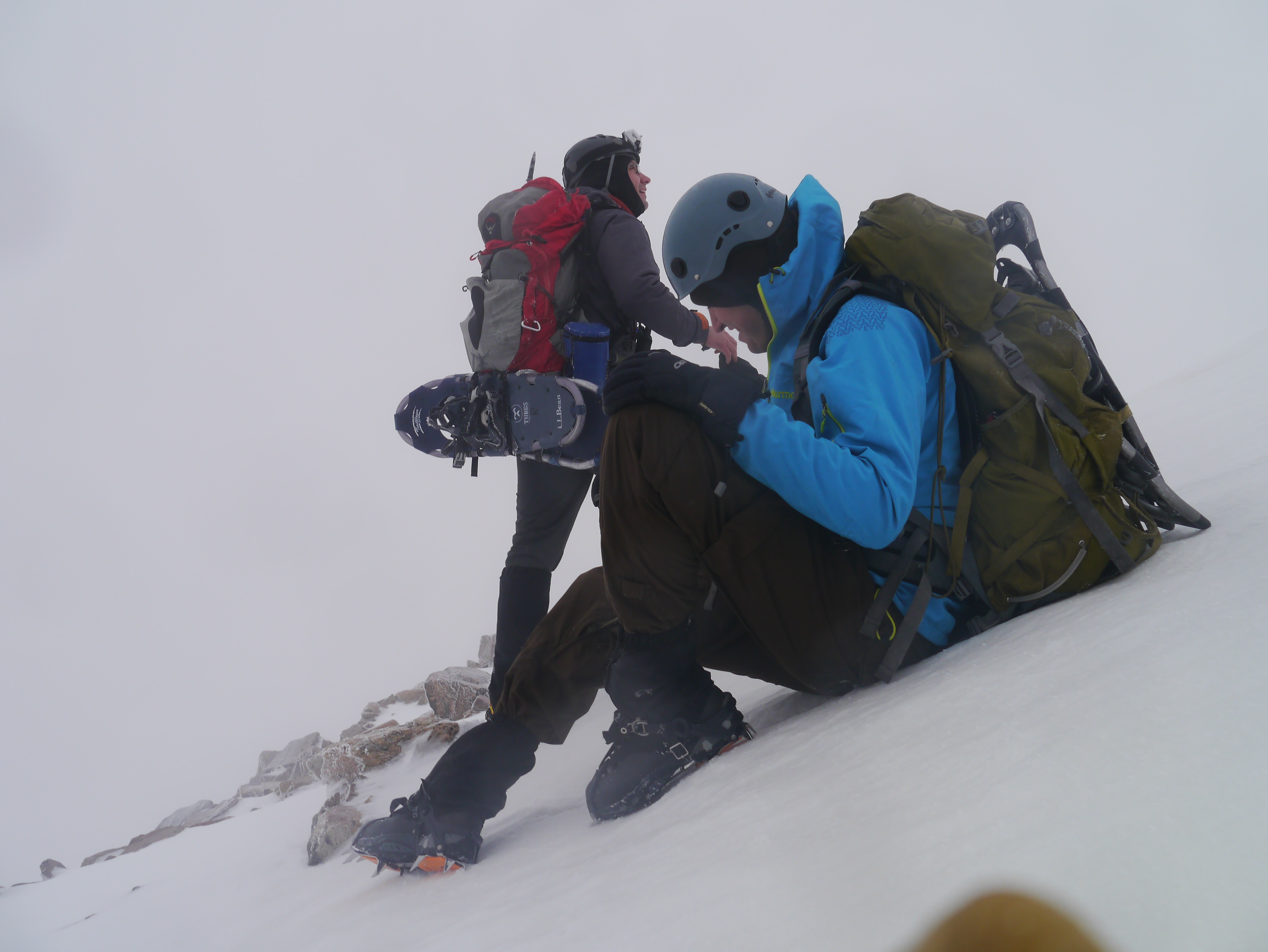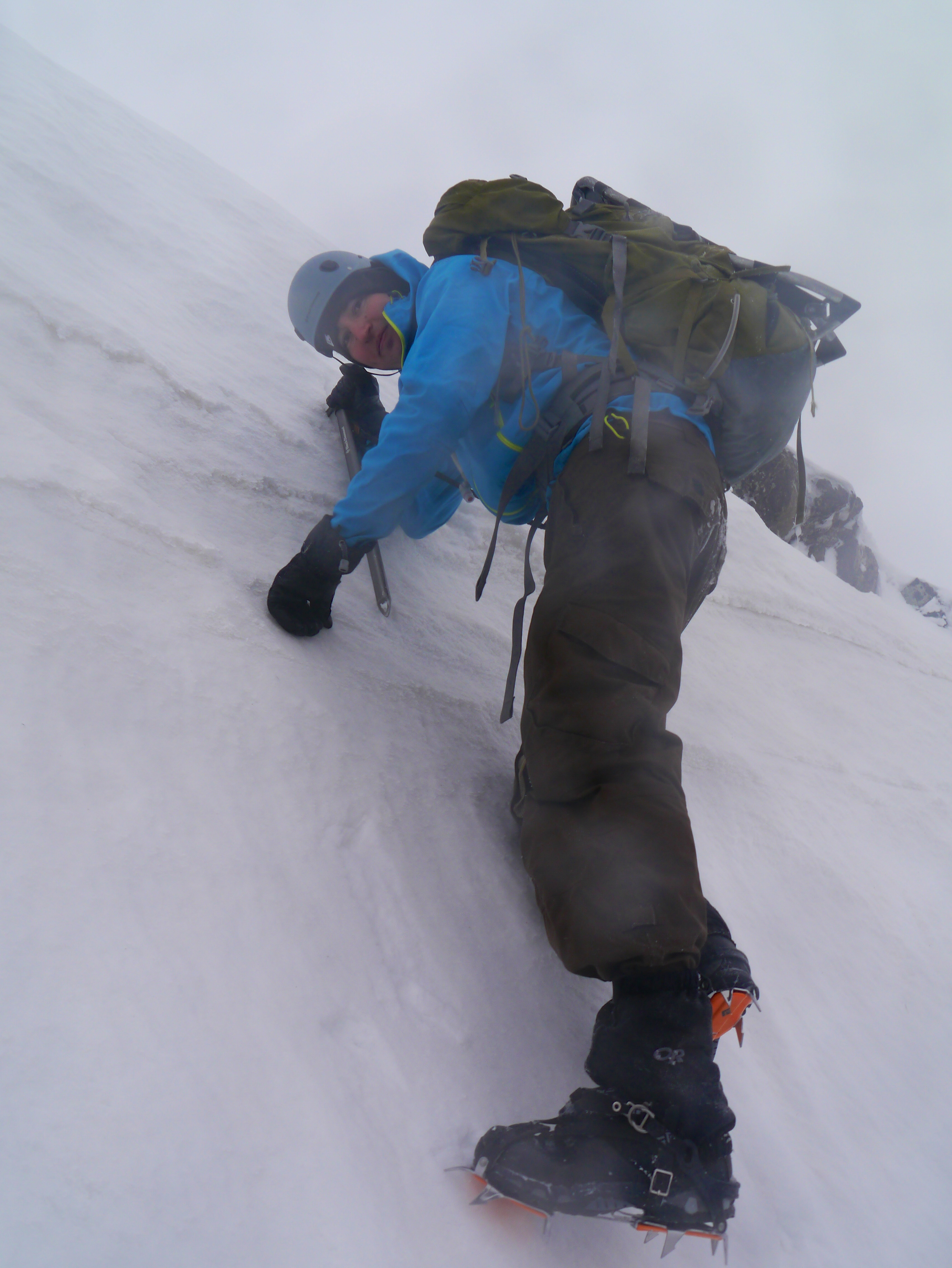 Rhyme ice (frozen fog) was covering everything. our packs were frozen solid, and our ice axes were slipper from the ice. It also made any rock crossings tenuous.