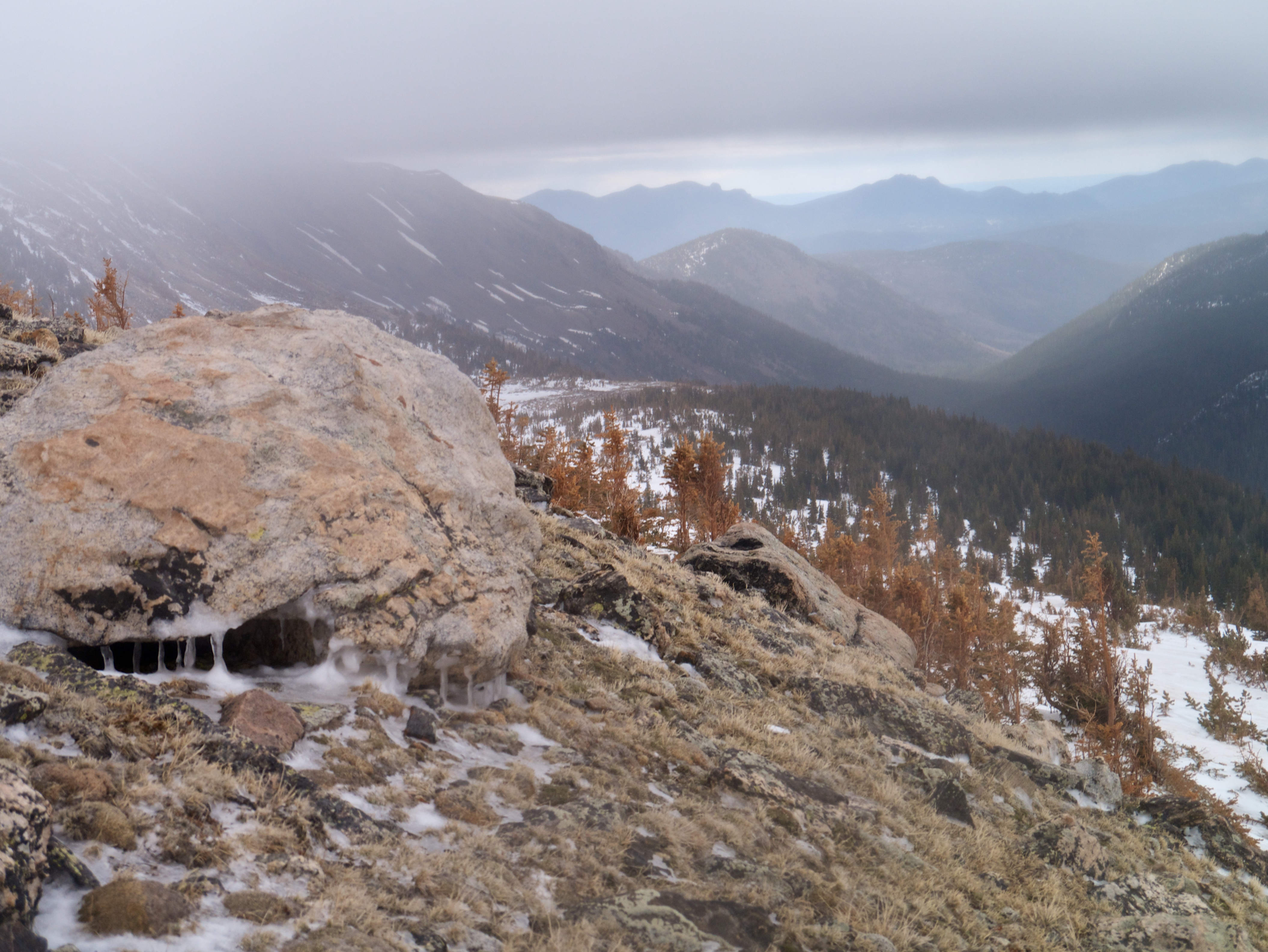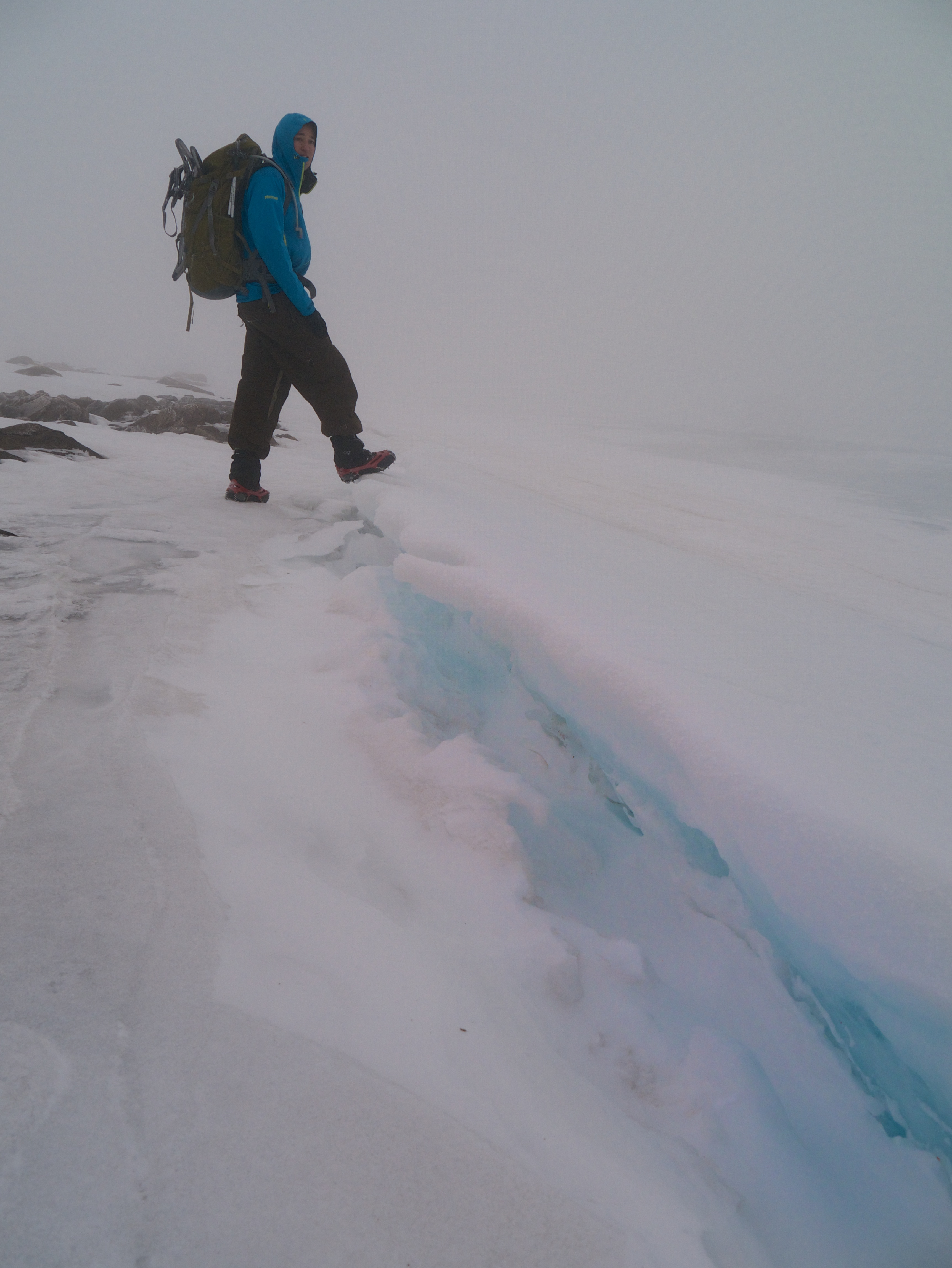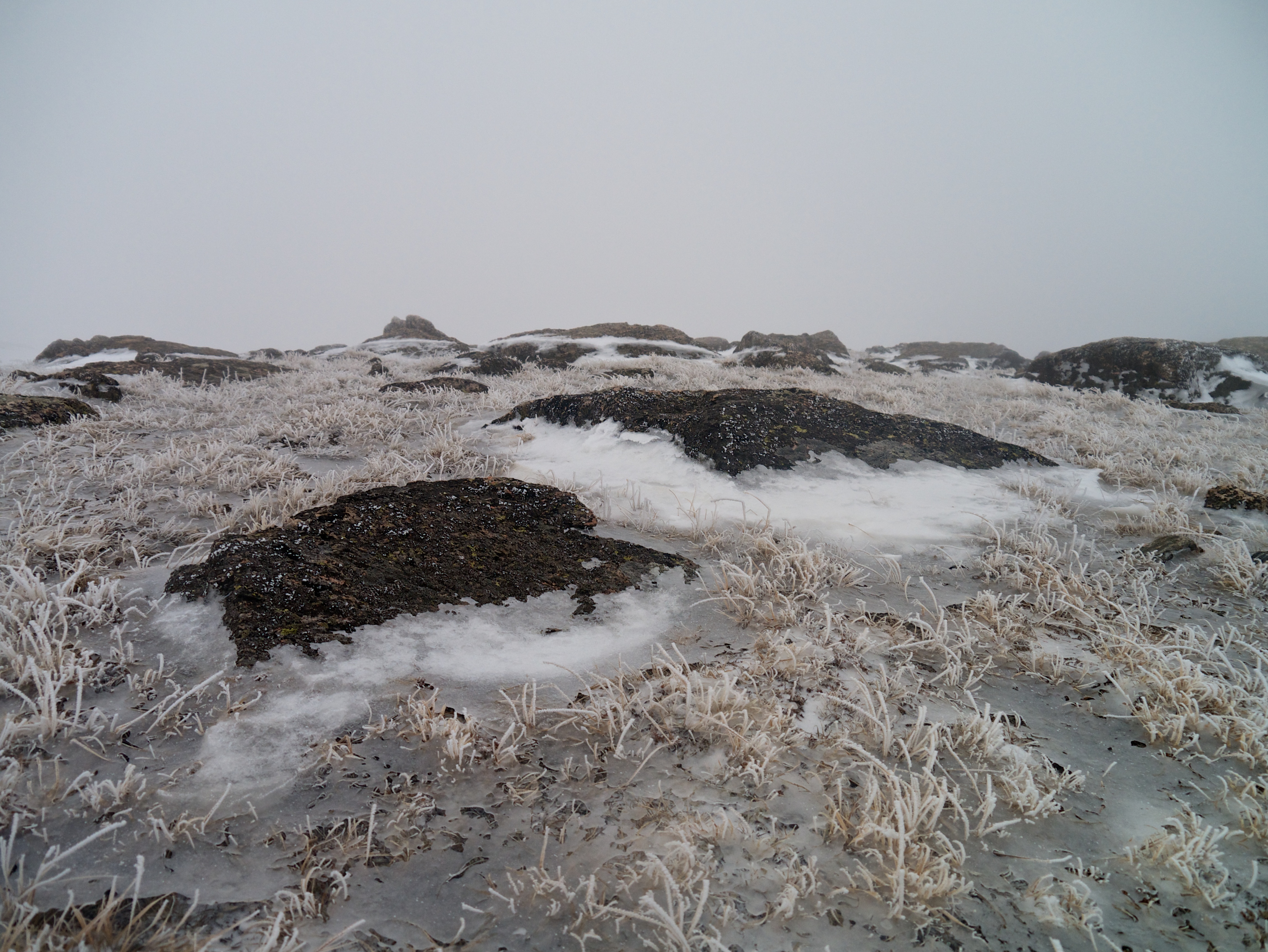 Rhyme ice (frozen fog) was covering everything. our packs were frozen solid, and our ice axes were slipper from the ice. It also made any rock crossings tenuous.