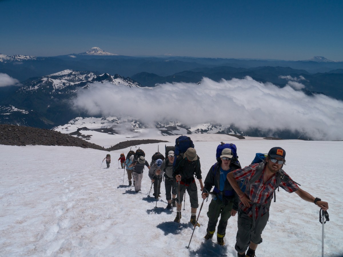 9221408204_8407f02091_h Published July 8, 2013 at 1600 × 1201 in Mount Rainier – Disappointment Cleaver with RMI ← Previous Next → Andy leading the group up the Muir snowfield. Mt Adams, Mt Hood, and Mt St Helens are visible in the backgrouhnd