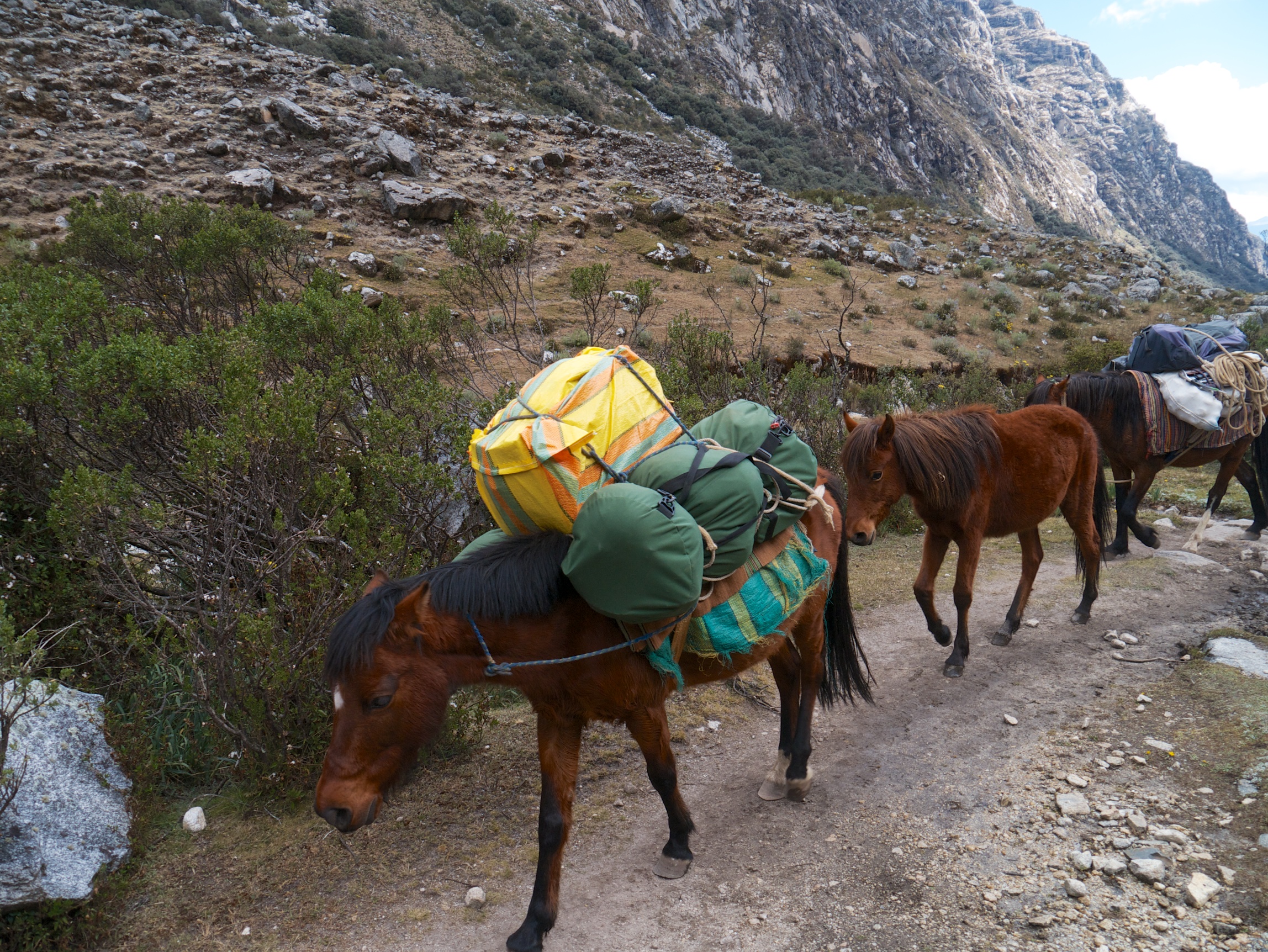 We also had a number of horses cary gear. They can carry more than the donkeys. Published July 17, 2014 at 2296 × 1724 in Cordillera Blanca – Peru Skills Seminar with RMI ← Previous Next →