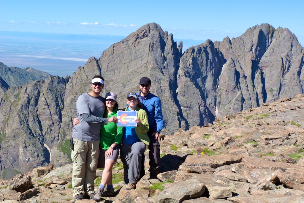 From the false summit there was a short scramble to the summit. The summit of Humboldt was quite large and had a nice wind shelter. The weather was PERFECT hardly any clouds and dead calm. We shared the summit with a few marmots and pika that came to help celebrate Erik & Steph’s first 14er summit.